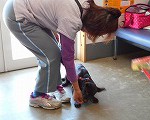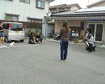 その次は、飼い主さんの左側に引っ付いでお座りの練習をしました。