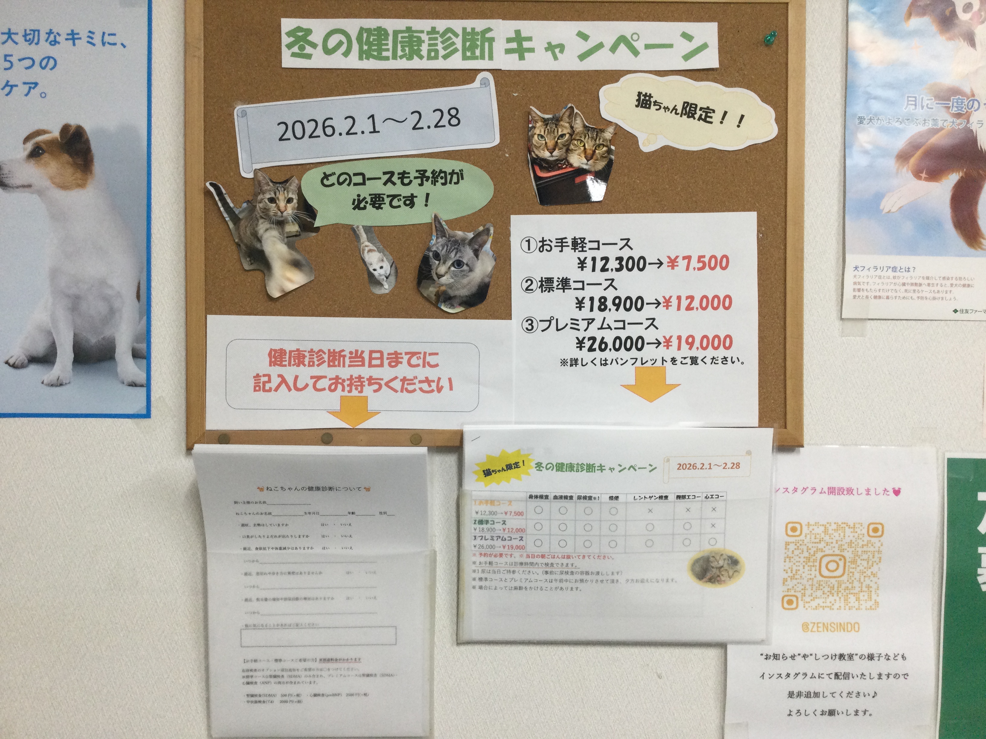猫ちゃん限定!健康診断キャンペーンのお知らせ😺